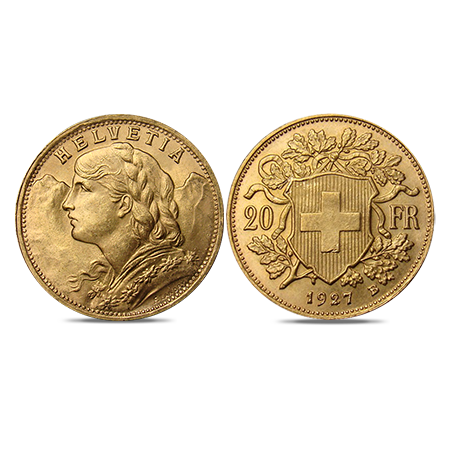 De 20 Zwitserse frank wordt al geslagen sinds 1886. De gouden munt kent eigenlijk twee uitvoeringen. Het eerste type werd geslagen tussen 1886 en 1896 en is minder bekend. Op de munt draagt het vrouwenportret een kroon met het opschrift ‘Libertas’. Deze eerste uitgave werd dan ook vaak de Libertas of Liberty genoemd. Vanaf 1897 kreeg de munt een nieuwe beeltenis. Het vrouwenportret werd meer gestileerd en kreeg de Alpen als achtergrond. Deze gouden Vreneli is in grote hoeveelheden geslagen en daarom veel meer bekend dan het eerste type.