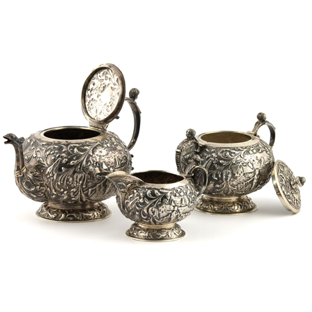Een zilveren servies bestaat uit een dienblad, koffie- en theekan en suiker- en melkkannetje. In sommige gevallen zijn er ook lepelvaasjes, lepeltjes of een suikerklontjestang aanwezig. Het gebruik ervan was vaak beperkt, alleen als er gasten over de vloer kwamen. Want ook voor een zilveren servies geldt: het heeft een regelmatige poetsbeurt nodig om het netjes te houden. Dat wilde men zo veel mogelijk beperken.