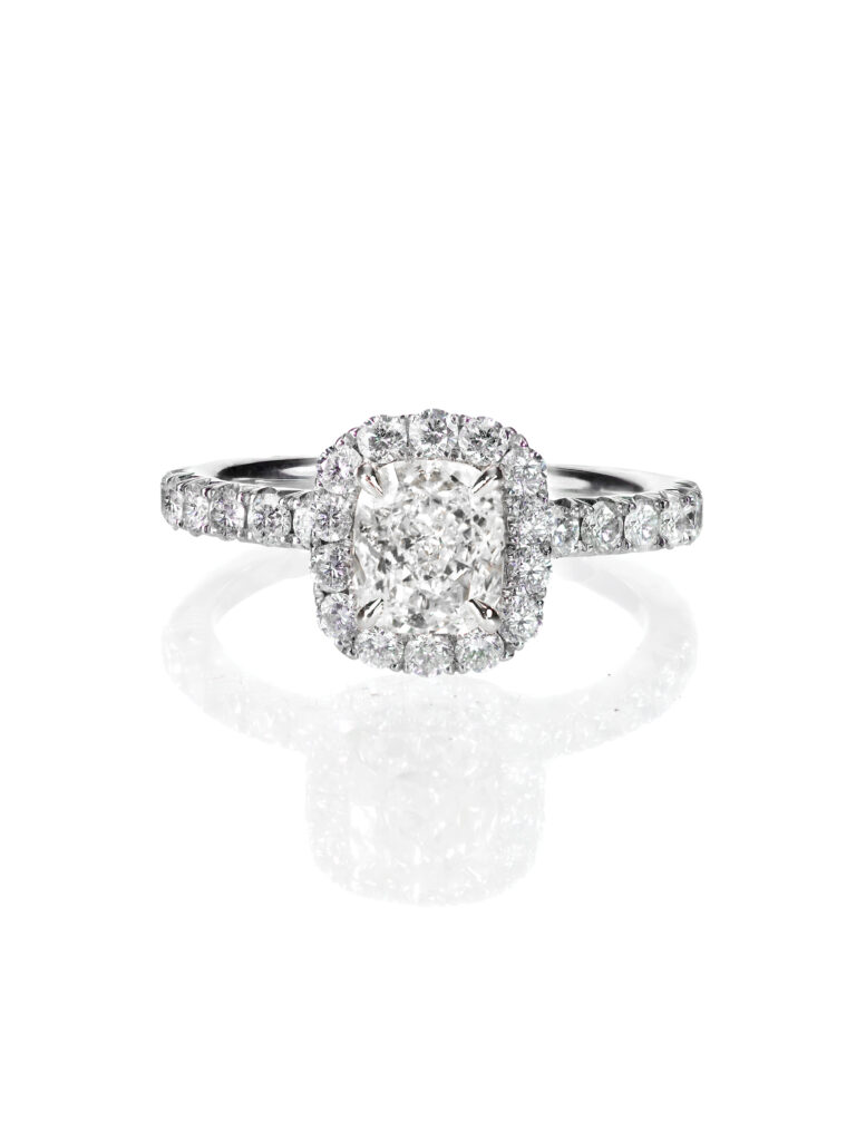 De diamantslijpvorm die de laatste jaren pas zijn naam maakt in de wereld van edelmetalen. De cushion geslepen diamant. Vermoedens zijn er dat dit veel te maken heeft met de ‘Halo’ verlovingsring. Hiervoor gebruikt men de cushion diamant. Niet zo gek ook, gezien dit een geweldige combinatie is.