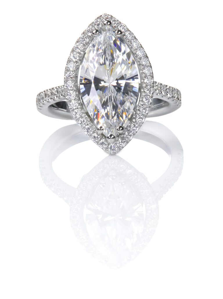 Symmetrie is een belangrijk kenmerk in de marquise geslepen diamant. Proportioneel moet het in balans zijn. Zodat de steen niet te lang oogt of gehurkt.