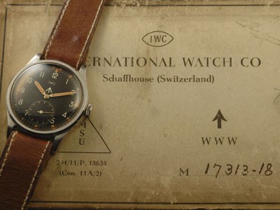 In 1940 werd gestart met de productie van extreem grote en nauwkeurige pilotenhorloges voor de Duitse luchtmacht, de zogenaamde B-Uhren. Deze horloges werden gedragen door piloten en met elkaar gelijkgezet voor aanvang van een missie, zodat alle piloten dezelfde tijd hadden. In 1944 werd gestart met het leveren van militaire polshorloges aan het Britse leger. Op het achterdeksel stonden de letters W.W.W. gegraveerd, welke staan voor “Watch, Wrist, Waterproof”. IWC was een van de twaalf leveranciers van deze militaire horloge leverde aan het Britse leger. Omdat er twaalf leveranciers waren worden deze de “dirty dozen” horloges genoemd. Daarnaast werd een pijl in het horloge gegraveerd, om aan te geven dat het horloge eigendom was van het leger.