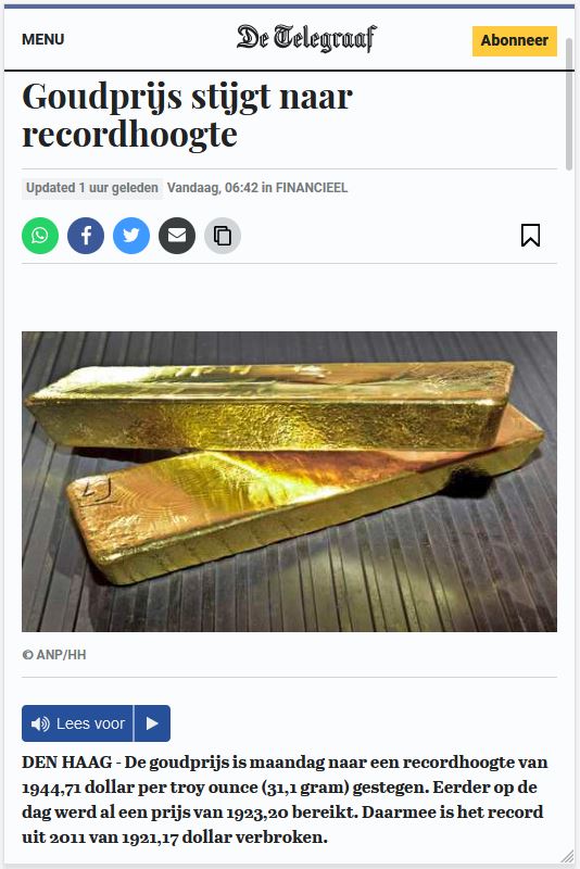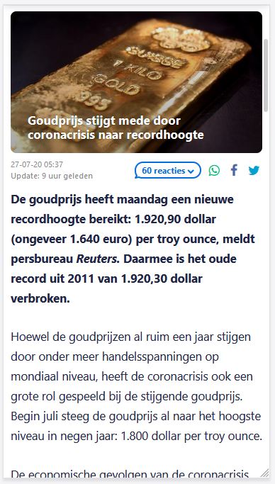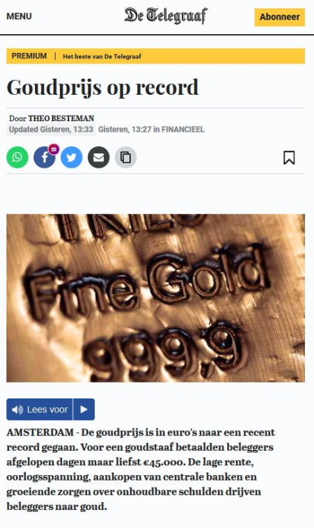 Goud schrijft geschiedenis: 100.000 euro voor één kilo