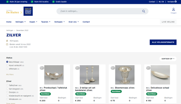 De liveveiling: Kavels komen in de live veiling en je kunt alleen nog live meebieden