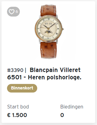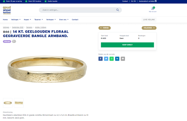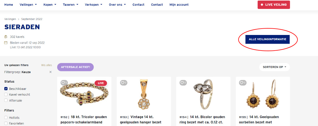 Is jouw favoriete kavel in de veiling? Dan is het alleen nog mogelijk om een direct bod te plaatsen. Je klikt op het kavel en je wordt direct doorverwezen naar de veiling.